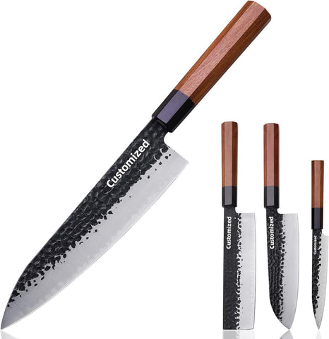 Crafted for Your Unique Kitchen JourneyFAMCÜTE Custom Engraved 4 Piece Kitchen Knife Set, Personalized Japanese Chef Knife Set, High Carbon Steel Wood Hanlde Sharp Cooking Knife